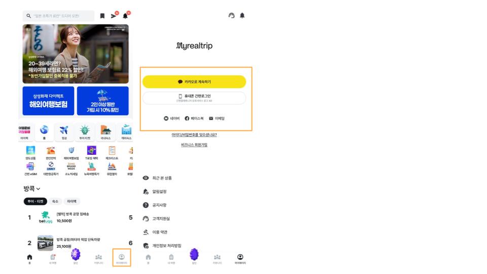 현재 마이리얼트립은 카카오/네이버/페이스북 연동, 이메일 주소로 회원가입이 가능합니다.