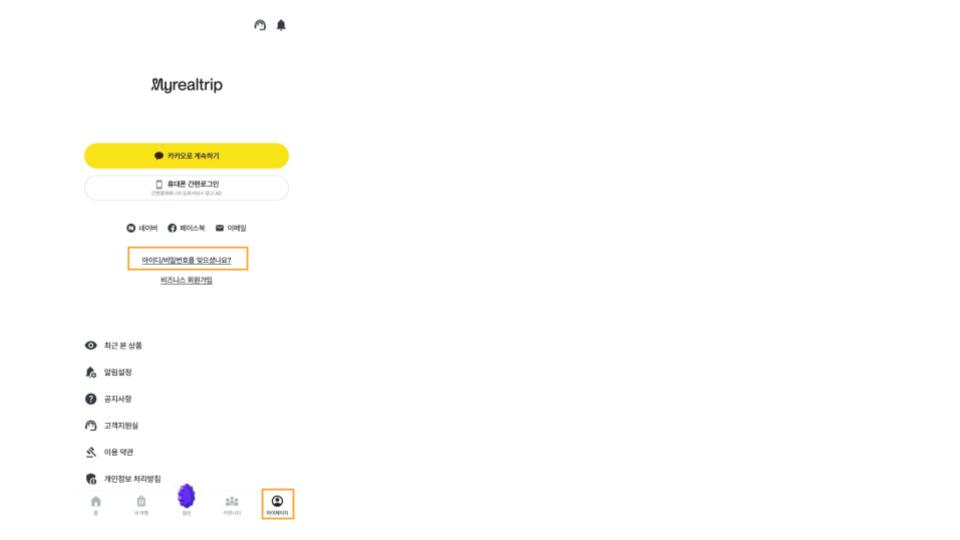 가입 하지 않은 계정이나, SNS 계정으로 로그인이 어려운 상황이라면 상기 화면에서 아래로 스크롤 하시어 '고객지원실' 버튼을 통해 문의해 주시기 바랍니다.