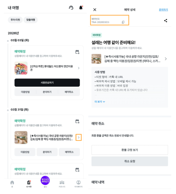 [내 여행] > [예정된 여행] > [예약 상세] > [상단 예약번호]