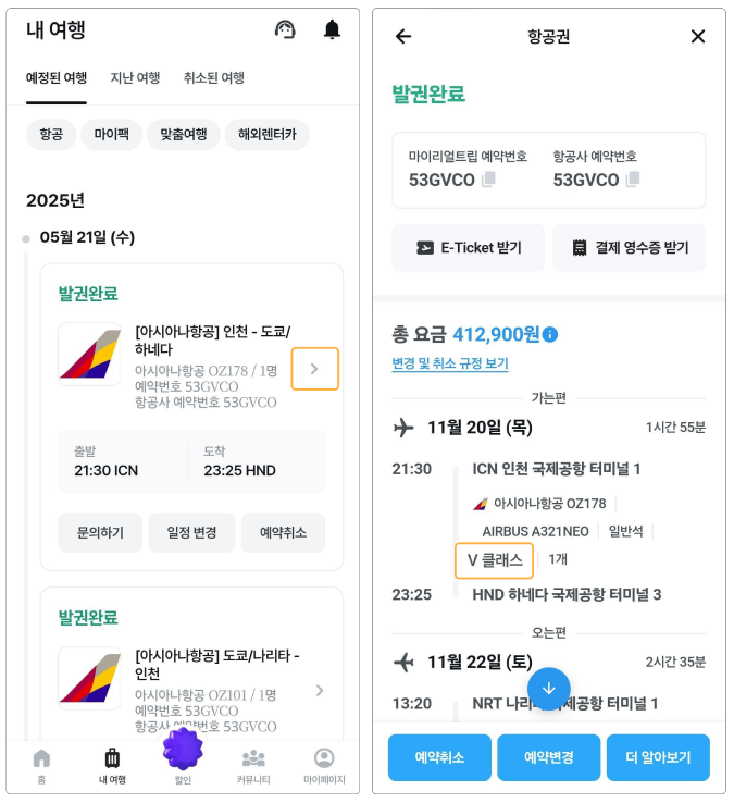 예약하신 항공권의 예약 등급(클래스)은 아래 경로를 통해 확인하실 수 있습니다.